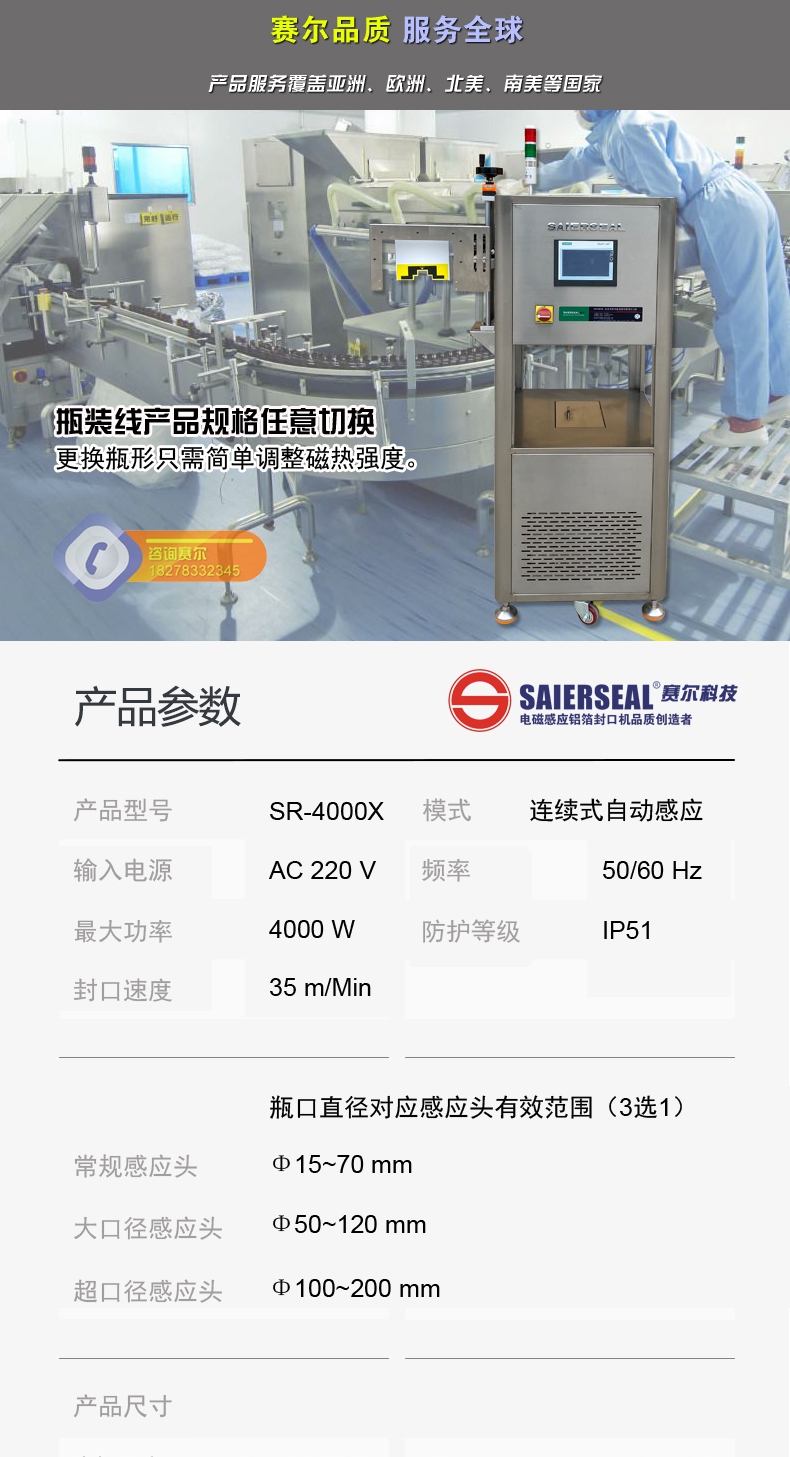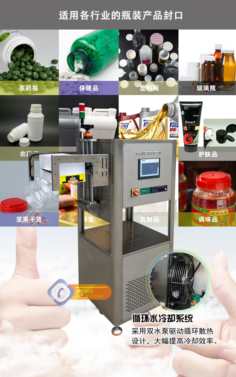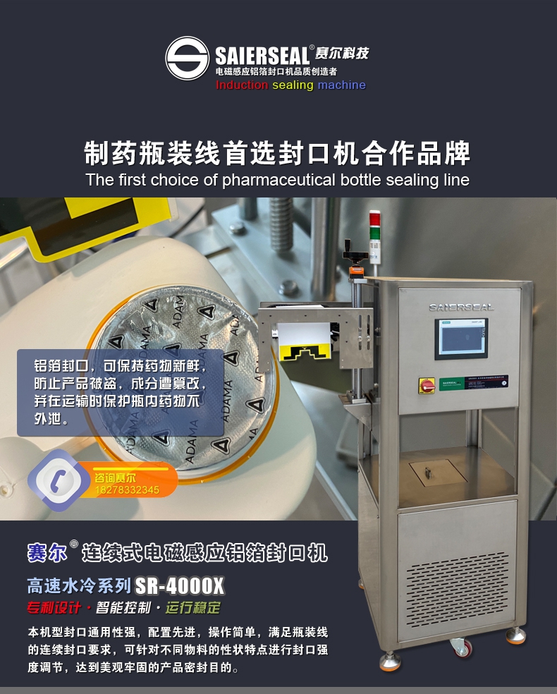 SR-4000X水冷式電磁感應(yīng)鋁箔封口機(jī)應(yīng)用于瓶口密封,可防止產(chǎn)品遭篡改,保持藥物新鮮,防止被盜,并在運(yùn)輸時(shí)保護(hù)藥劑或藥粉不外泄。